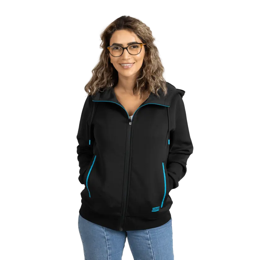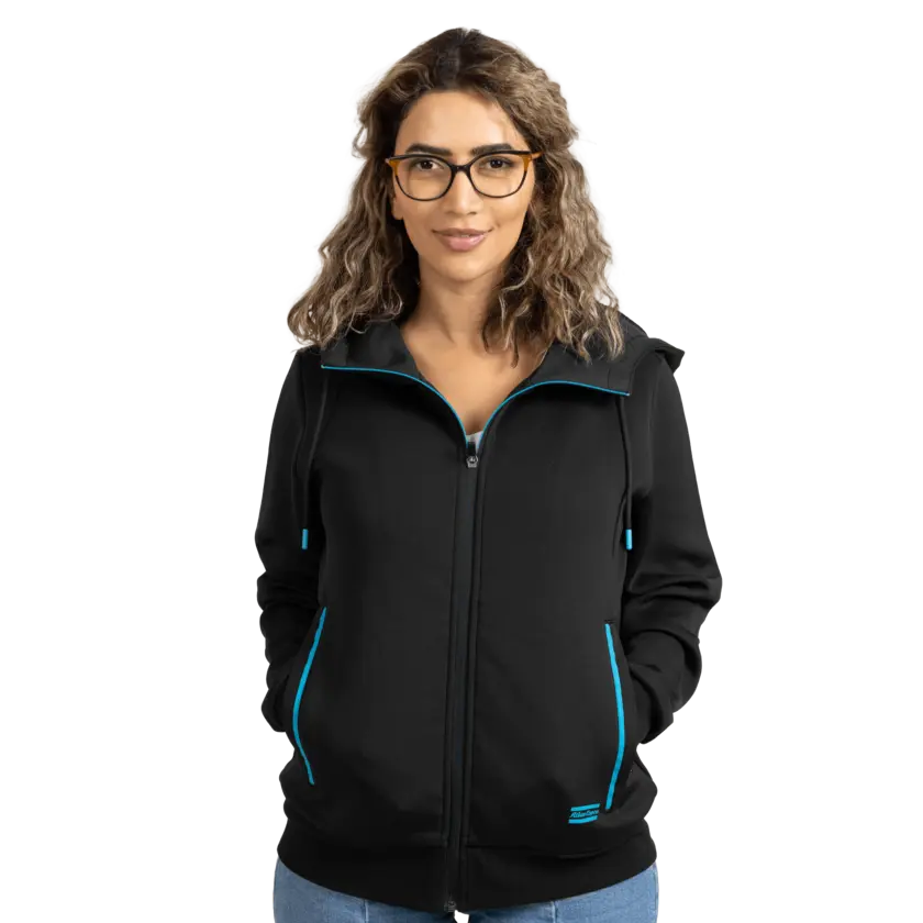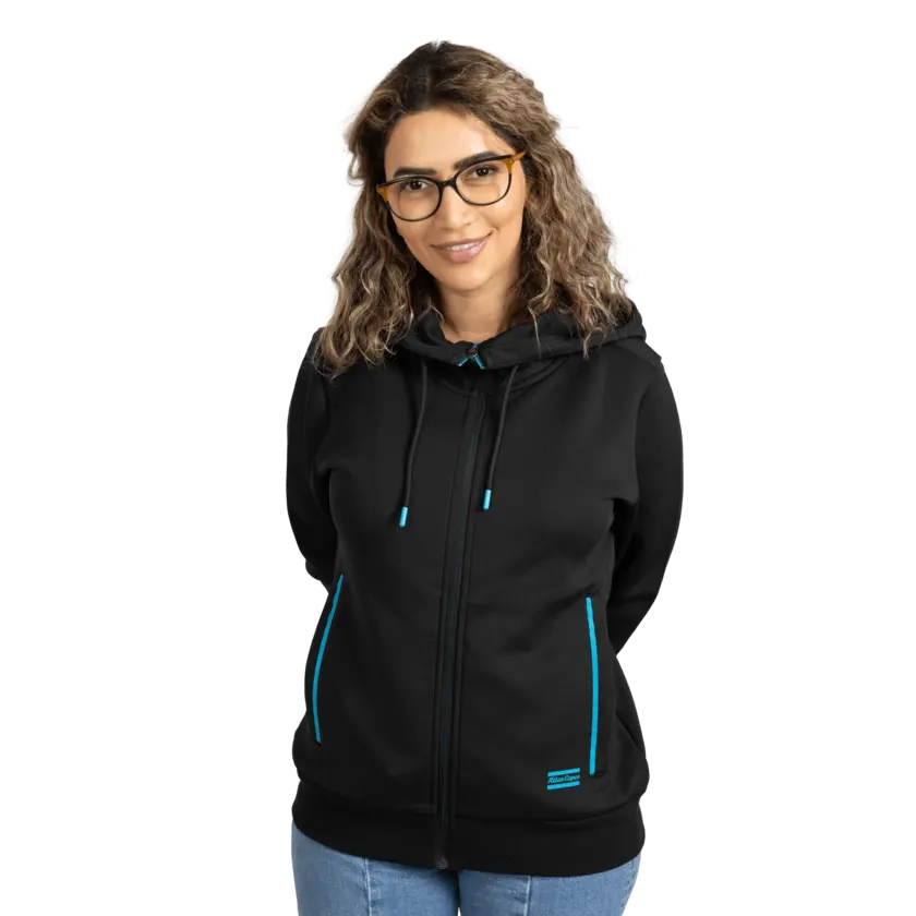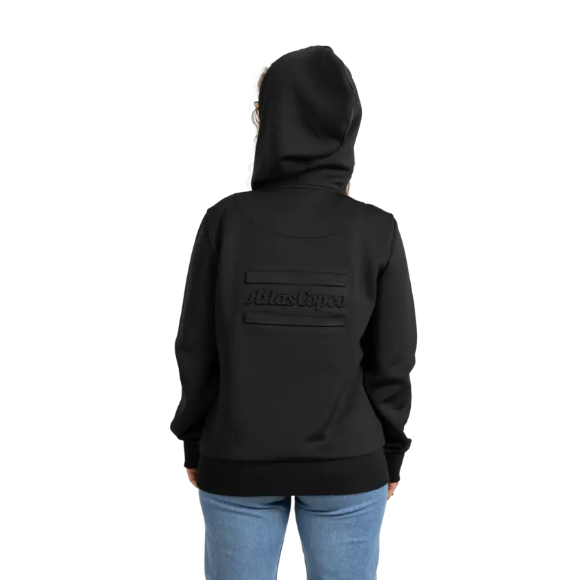 Contemporary hoodie with a full zip, featuring an exclusive design and an embossed logo on the back. Thoughtfully finished with contrast details in signature Atlas Copco blue for a distinctive and stylish look.