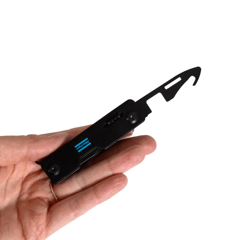 Pockable Multitool in 440C stainless-steel for blade & scissors and 420 stainless for other components. Excellent stain and rust resistance even when it fully submerged in water. 11 functions in one.