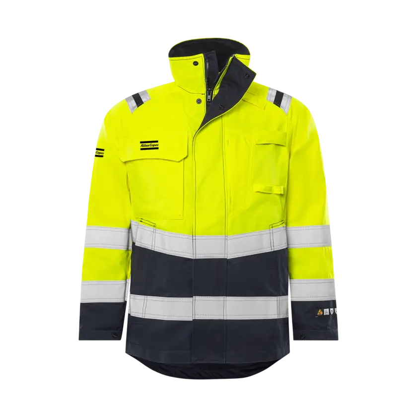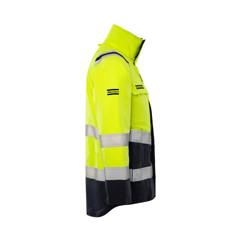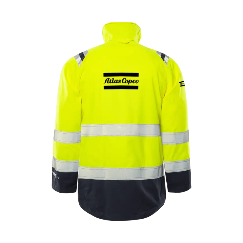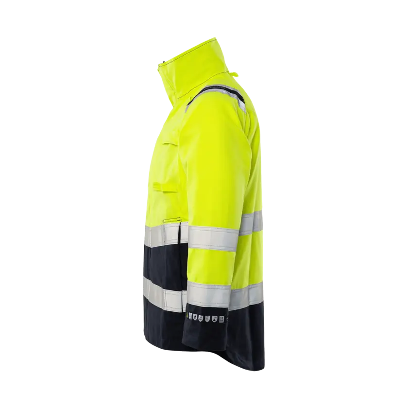 High-visibility certified jacket with inherent flame protection, specially adapted for ATEX environments with no metal details. The jacket is approved for industrial laundry and designed for durability and soft comfort. It provides certified multinorm inherent protection and features a fabric that is resistant to dirt, oil, and water, ensuring long-lasting performance in demanding conditions. Please note: This is an On Demand item, which means it is printed specifically upon order. As a result, the delivery time will be approximately two weeks longer than usual. Also, no returns due to the same reason.