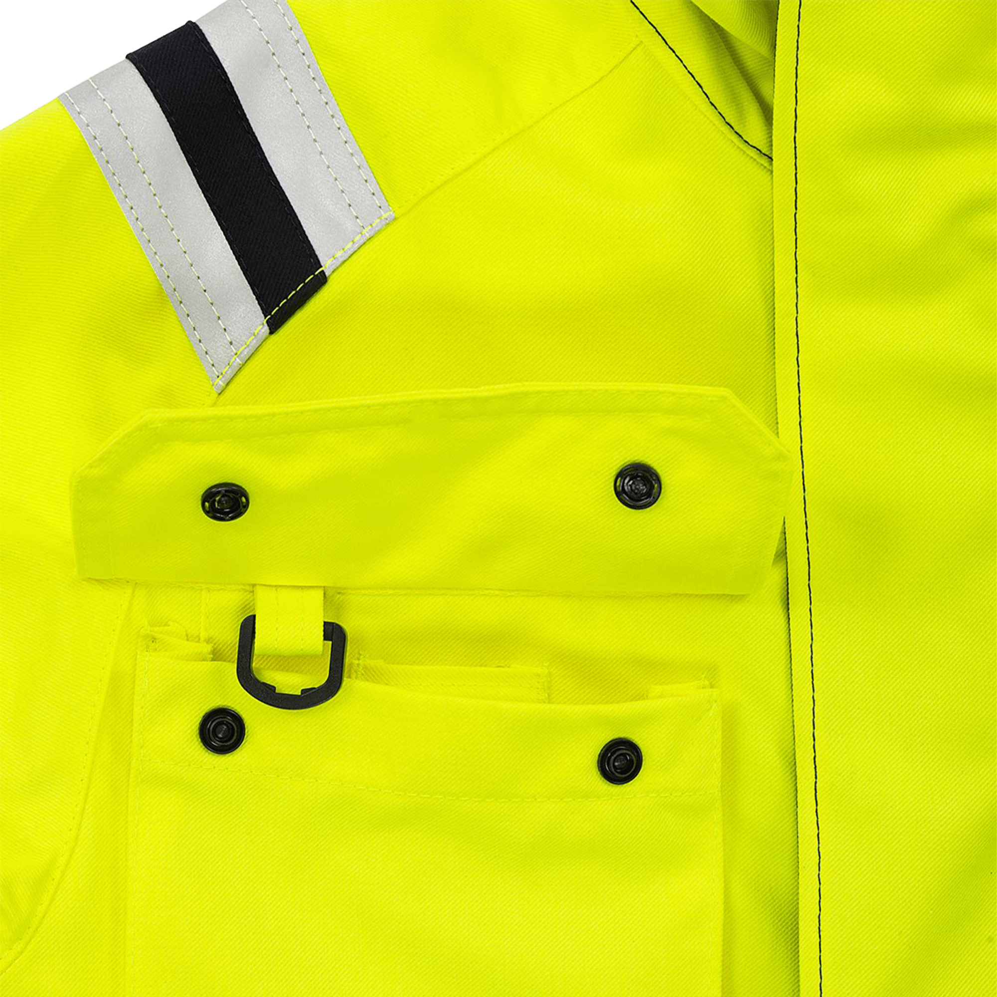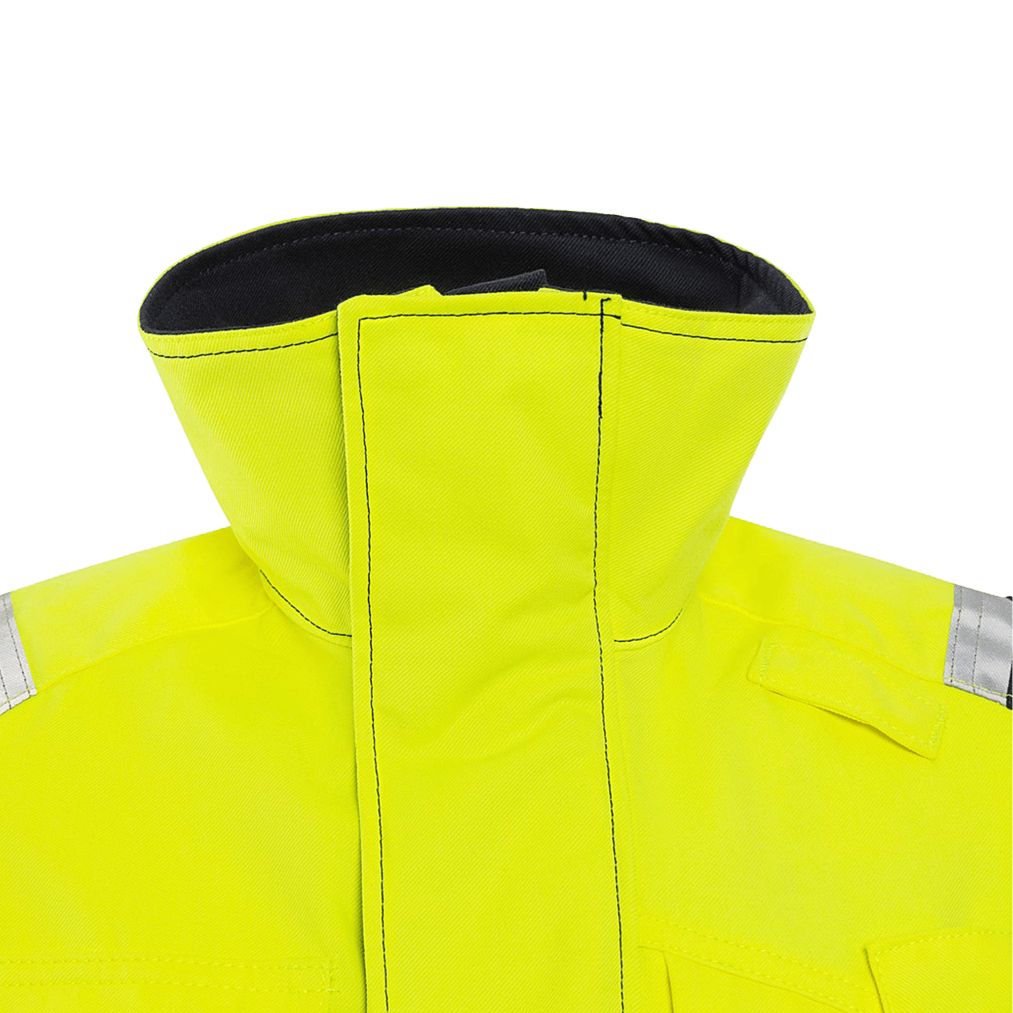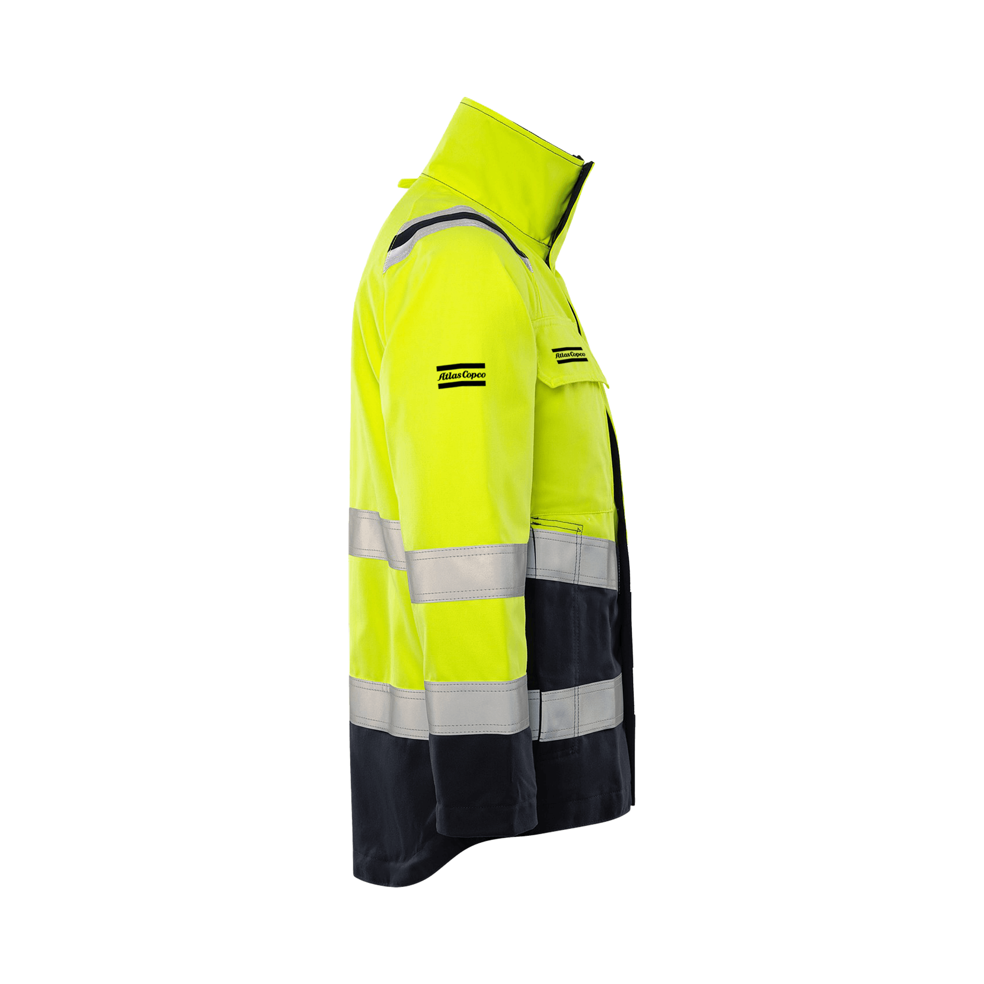 High-visibility certified jacket with inherent flame protection, specially adapted for ATEX environments with no metal details. The jacket is approved for industrial laundry and designed for durability and soft comfort. It provides certified multinorm inherent protection and features a fabric that is resistant to dirt, oil, and water, ensuring long-lasting performance in demanding conditions. Please note: This is an On Demand item, which means it is printed specifically upon order. As a result, the delivery time will be approximately two weeks longer than usual. Also, no returns due to the same reason.