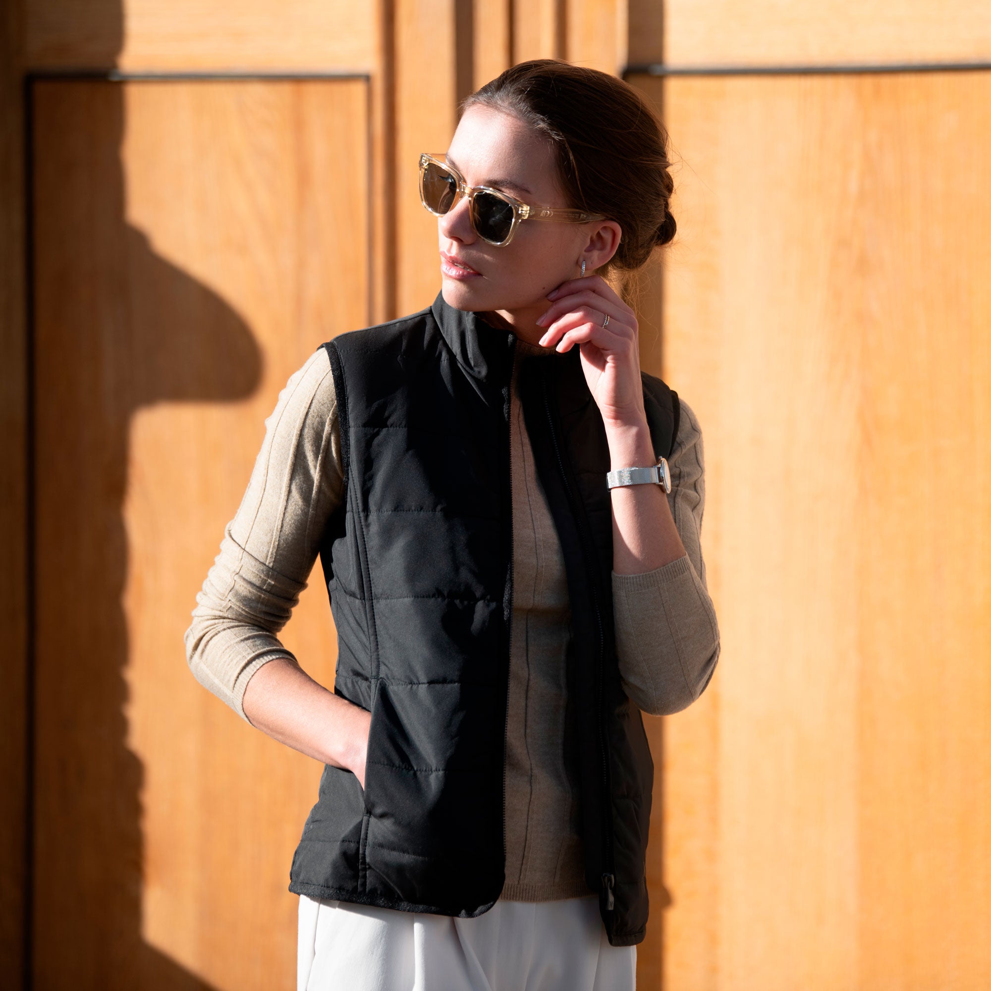 A comfortable all-season bodywarmer made from recycled materials. The elegantly horizontal quilted Hudson gilet features classic design details and a Sorona® Aura padding for efficient insulation, warmth and a lightweight feel.