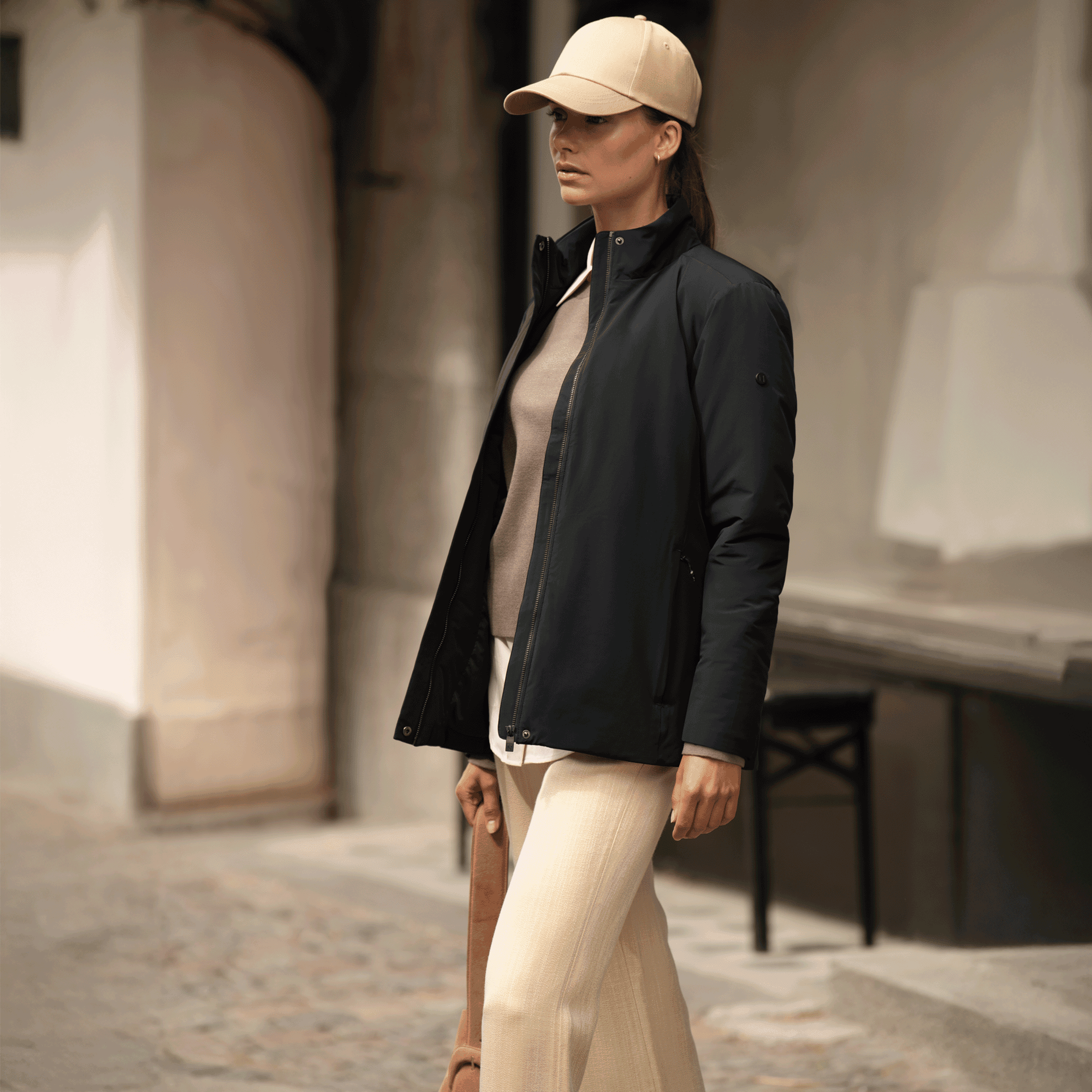 Its elegant matte finish and streamlined silhouette make it an essential transitional jacket that embraces functionality and fashion. The women’s version is designed without rib, but with a wind placket covering the main zipper for a more feminine expression.
