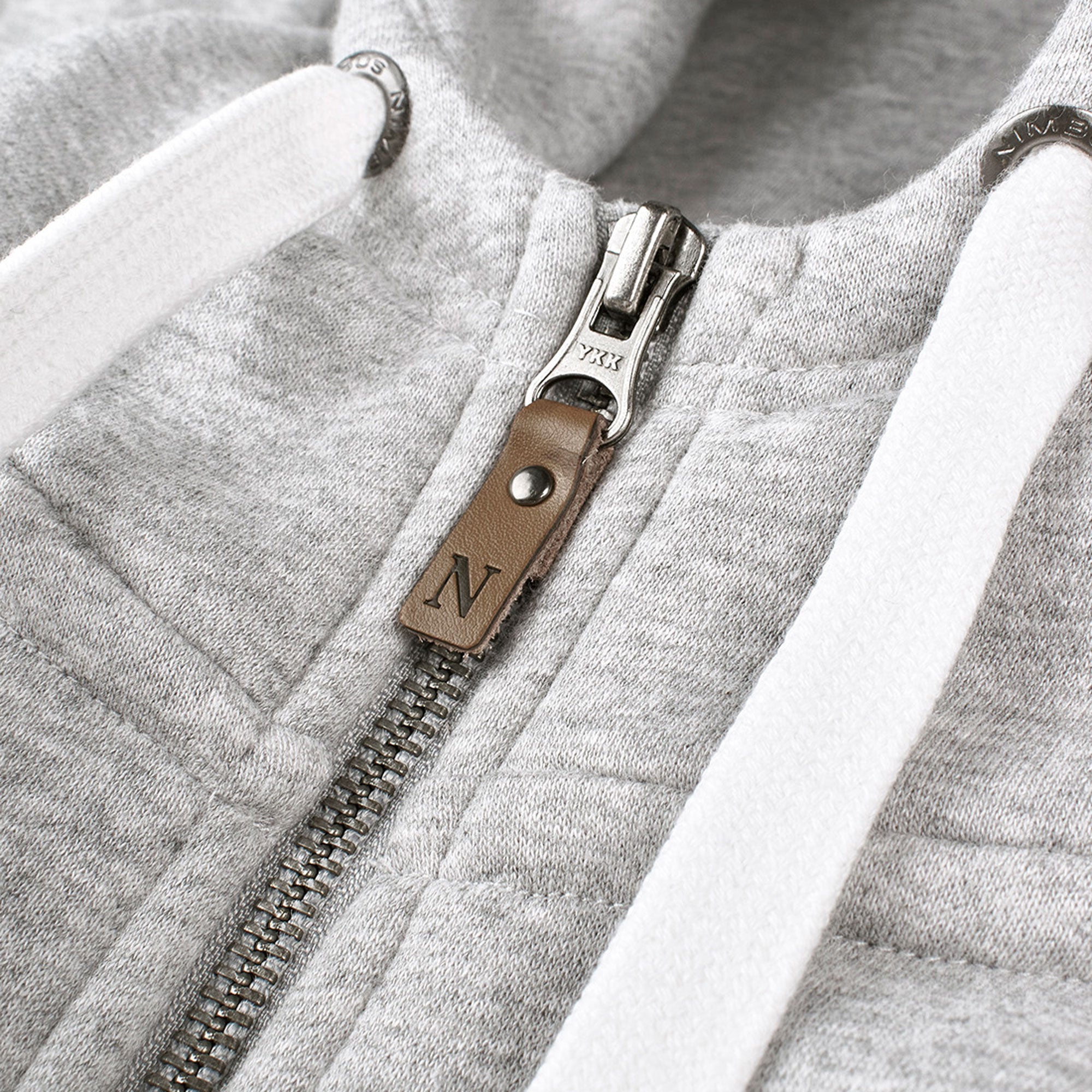 This desirable modern hooded sweatshirt, in a comfy organic cotton-rich blend, is stylish enough for work and fashionable enough to wear around town. “Style” has been a key word for our design team, resulting in eye-catching parts, such as rugged drawstrings, leather details, the trendy signature neck loop and YKK zipper. The brushed fleecy lining and the short-shave treatment will make the luxurious feeling last forever.