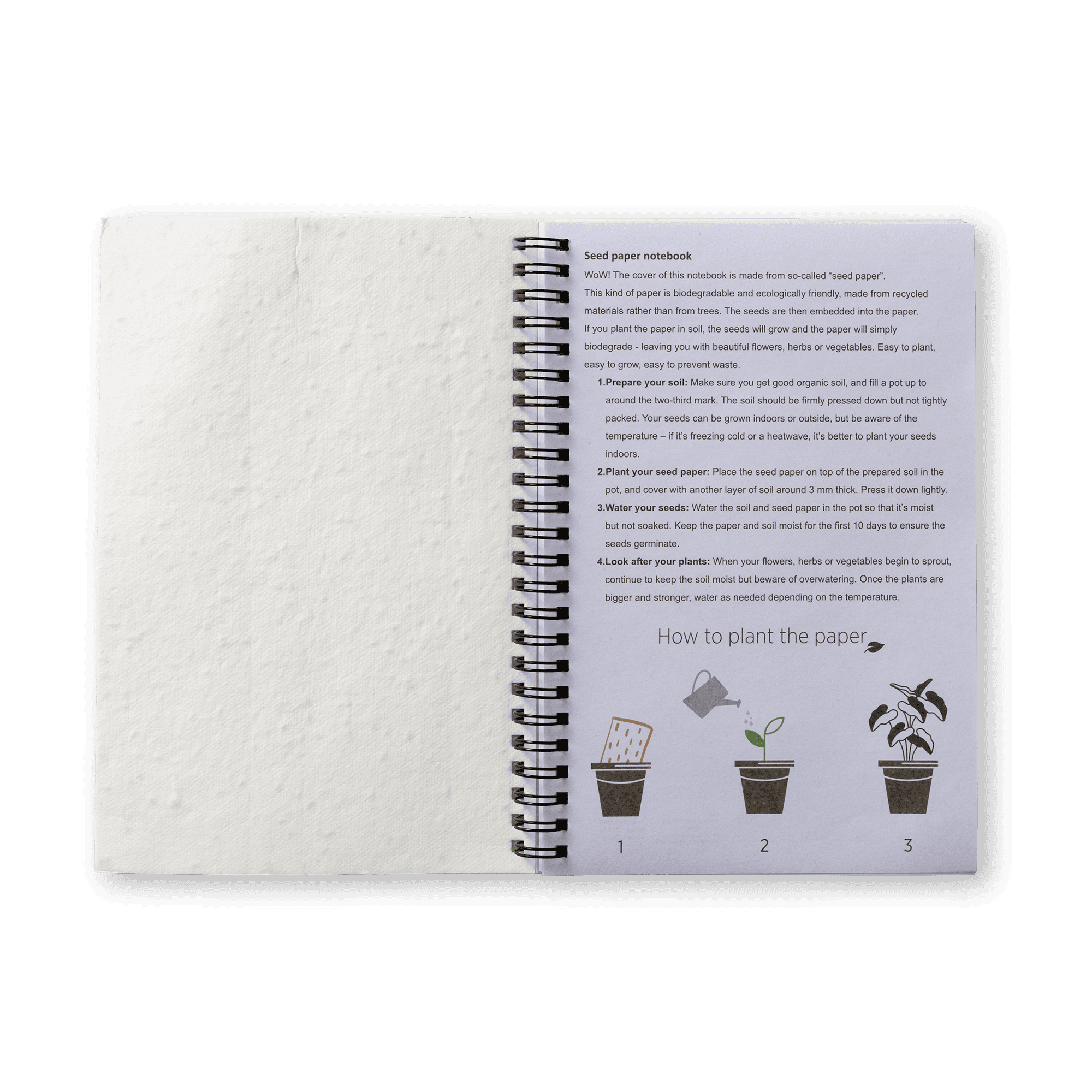 Lined notebook with the cover made of seed paper from flowers. If you plant the paper in soil, the paper disappears, the seed grow and you are left with beautiful flowers. ​