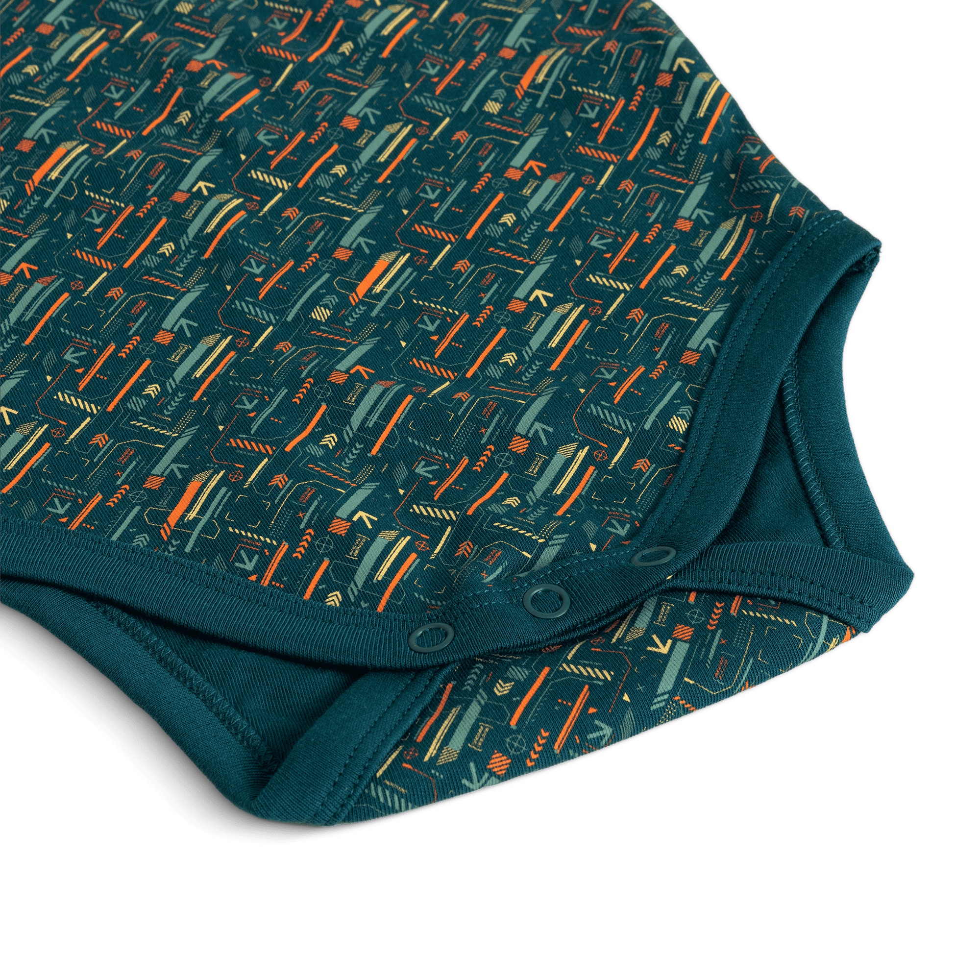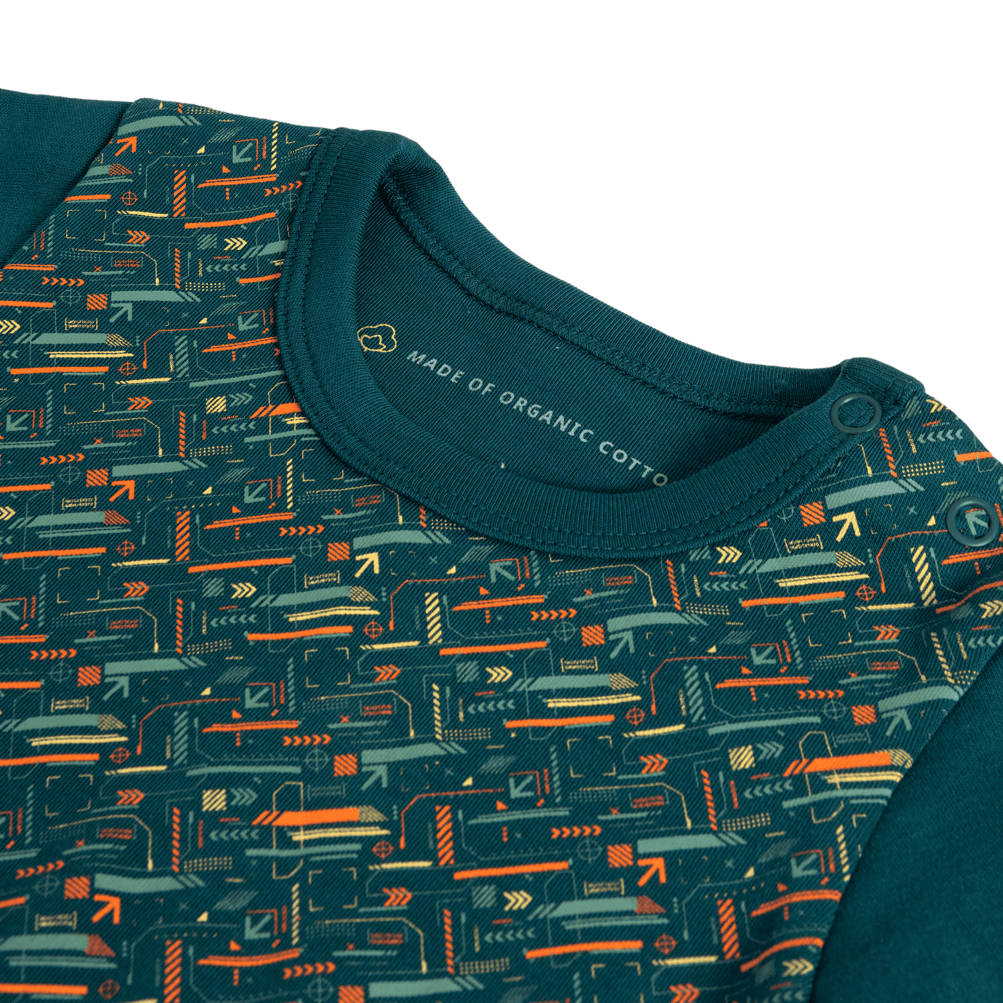 This short-sleeved baby bodysuit is made from soft, 220gsm organic cotton in a cozy interlock knit. Easy-to-use metal snap buttons at the shoulders and legs make dressing simple, while the gentle, double-layered elastane rib at the neck and leg openings ensures a snug yet comfy fit – perfect for little movers.