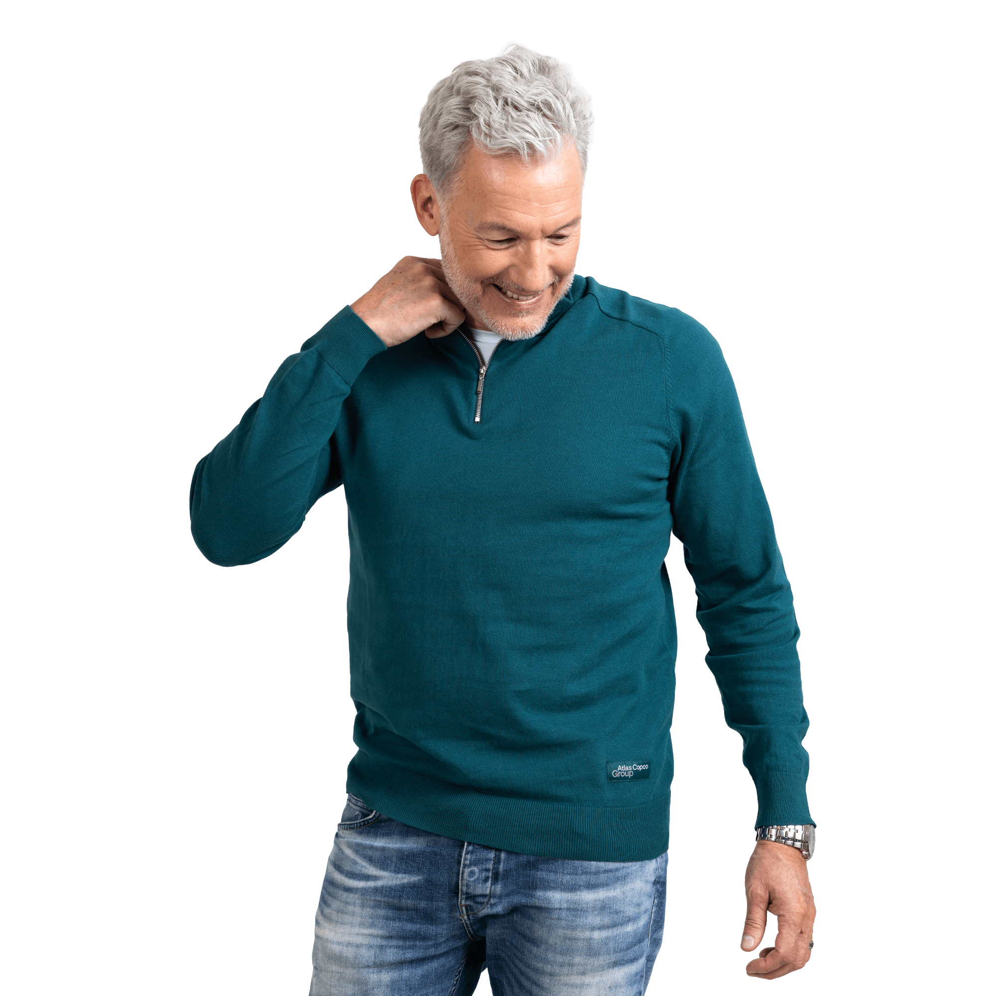 man wearing white tshirt with atlas copco group logo man wearing white tshirt with atlas copco group logo